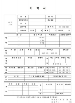 아래의 사진은 우리가 한국에서 흔히 사용하는 이력서 샘플입니다. 한국에서 우리가 흔히 쓰는 이력서에는 아래 사진과 같이 이름과 나이, 사진, 주소, 학력과 이력, 심지어는 가족관계까지 엄청난 개인정보를 입력해야 합니다. 또한 내가 지원하려고 하는 기업에서 원하는 이력서와 자기소개서 양식과 질문에 맞춰서 작성하는 것이 대부분입니다.