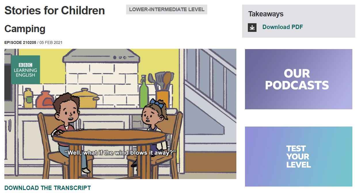 각 에피소드에는 텍스트 스크립트와 어휘 설명, 퀴즈 등 추가 학습 자료가 제공되어, 듣기 학습 후에 내용을 복습하거나 학습을 심화할 수 있습니다. 또한 초급부터 중고급까지 다양한 수준의 학습자를 대상으로 제작되어, 자신의 영어 수준에 맞는 콘텐츠를 선택해 단계적으로 학습할 수 있어요. 드라마 시리즈는 중급이상이라고 명시되어 있는데요. 혹시 너무 어렵다면 아래에 소개해 드린 Stories for children 팟캐스트를 선택해서 들으실 수 있습니다.
