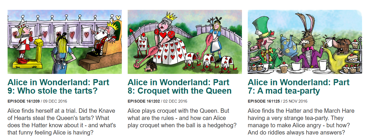 우리가 잘 알고 있는 이상한 나라의 앨리스, 걸리버 여행기를 포함한 다양한 스토리가 있는 팟캐스트들을 제공합니다.