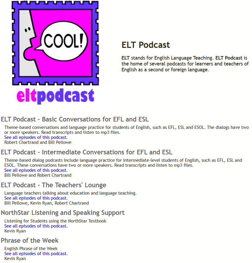 ELT Podcast - Basic Conversations for EFL and ESL ELT Podcast - Intermediate Conversations for EFL and ESL ELT Podcast - The Teachers' Lounge NorthStar Listening and Speaking Support Phrase of the Week